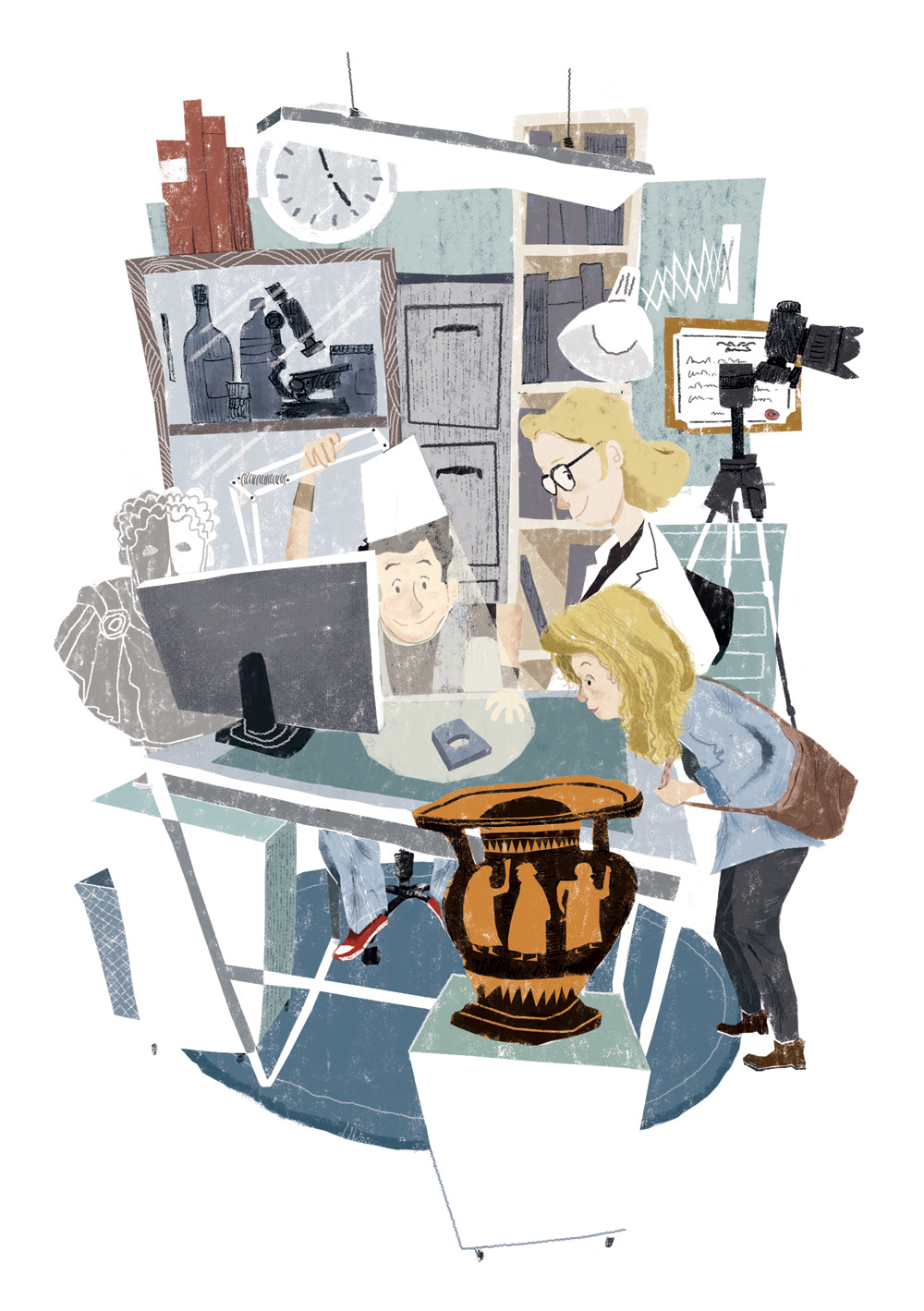 A few images of Il ladro di scarabei, the 1st adventure of "I Cercastoria", a series of children's books about archeology and time travel published by Ante Quem Ragazzi.